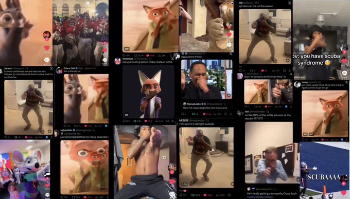 The Scuba dance originated in late 2025, which became a sports emote/celebration. Scuba was often performed during epic sports moments in the NBA, NFL and Schools etc. It eventually exploded into a massive worldwide viral meme by early 2026, where people of all ages took part in TikToks & Instagram Reels consisting of (school activities, AI edits, GIFs, group dances, family moments, jokes, joyful reactions, social interactions) and more. Through this dance/emote, a culture was born. People worldwide have adopted Scuba (from post to post and coast to coast), elevating its popularity in a state of constant viral growth, cross-generational bonding and inclusivity.